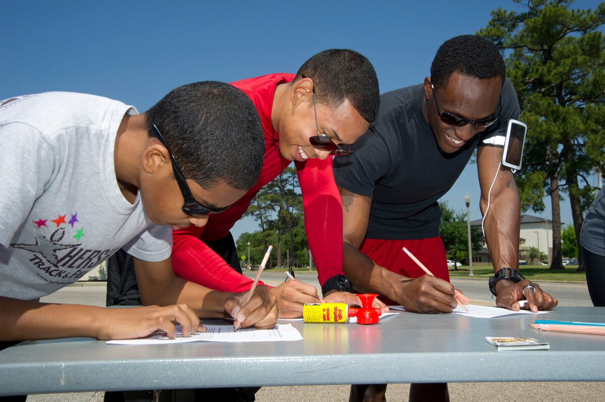 Geoffrey Sasaki, 81st Diagnostics and Therapeutics Squadron, displays the running shoes of his friend, Bill Gasparrini, who recently died of cancer. Sasaki ran the National Alcohol Awareness 5k run April 13, 2012, at Keesler Air Force Base, Miss., in his honor, carrying the shoes with him, and placed first overall with a time of 20:25. Sasaki won the race while pushing his son Carson, 6, and daughter Alexandra, 3, in a double stroller. (U.S. Air Force photo by Adam Bond)