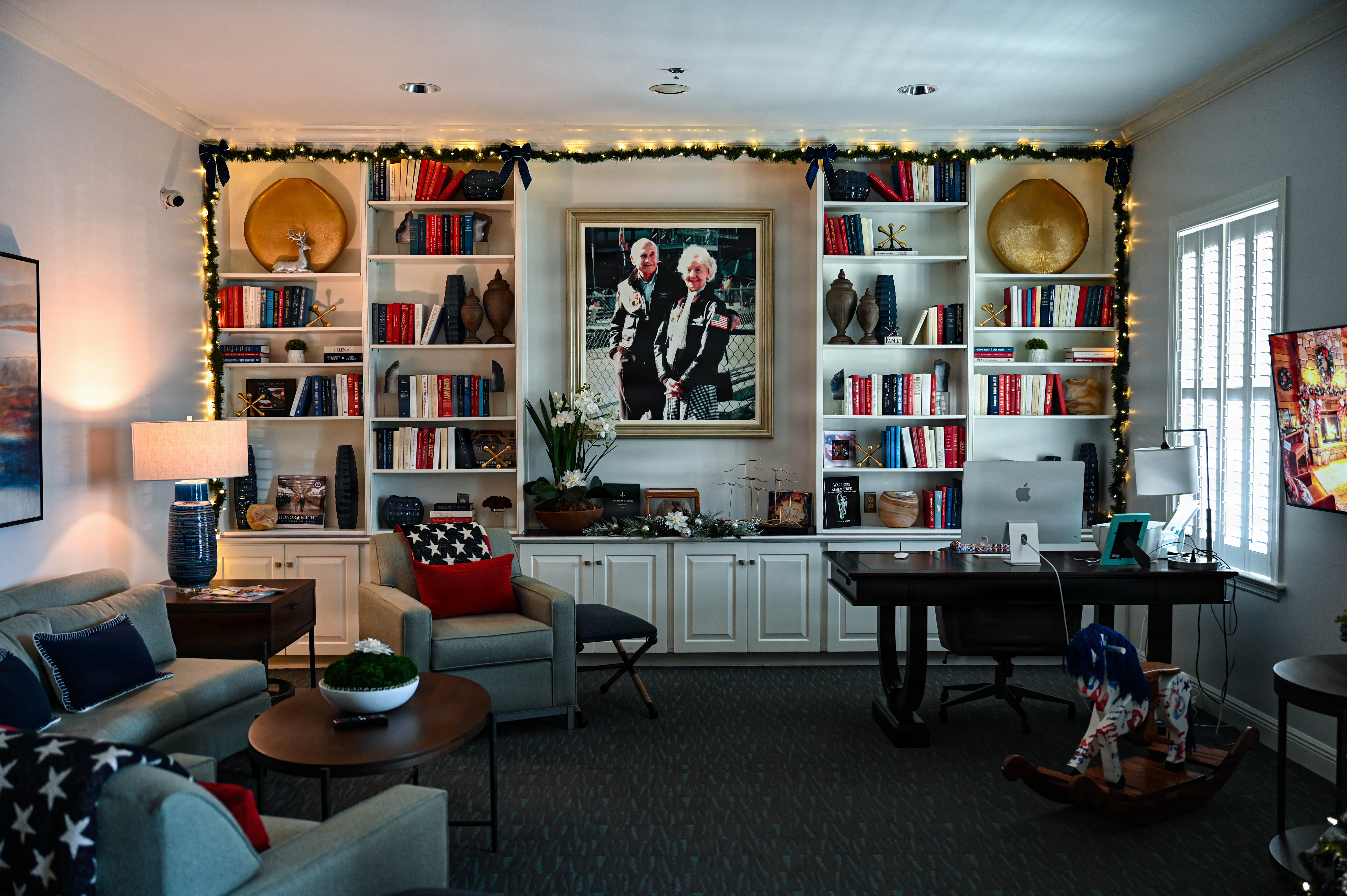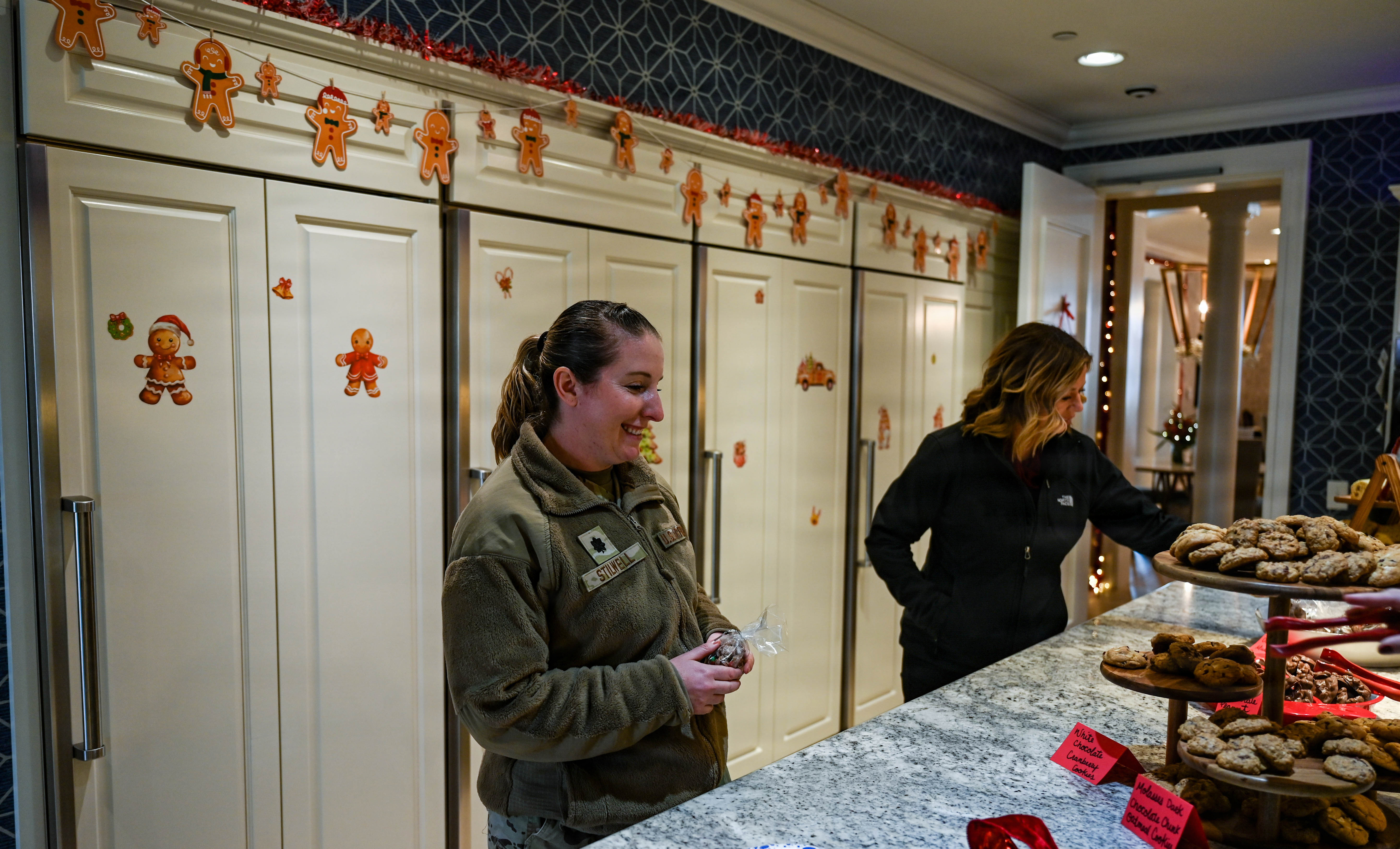 Ron Feder, Fisher House Foundation president, speaks with U.S. Air Force Maj. Ruben Covos, 81st Training Wing chaplain, during an open house at Keesler Air Force Base, Mississippi, Dec. 16, 2025. The event provided base leaders and community members an opportunity to learn about the Fisher House mission and available support for military families. (U.S. Air Force photo by Senior Airman Kurstyn Canida)