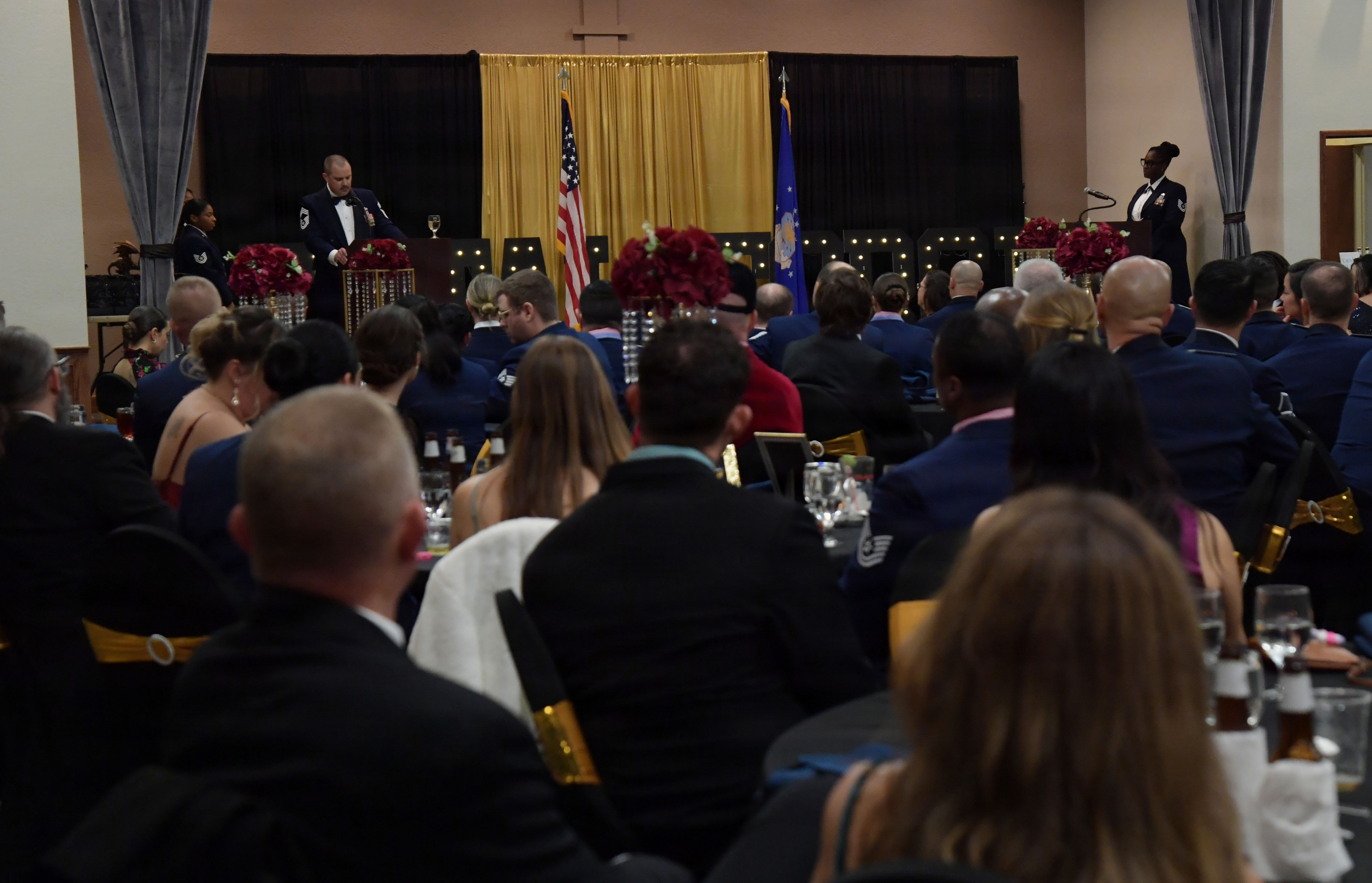 Daniel Kazumura, 81st Training Wing legal assistant, applauds during the 81st Training Wing's 2025 Annual Awards Ceremony at Keesler Air Force Base, Mississippi, Feb. 20, 2026. The ceremony honored outstanding Airmen and civilians from across the installation, recognizing winners in more than 15 categories for their achievements throughout 2025. (U.S. Air Force photo by Kemberly Groue)